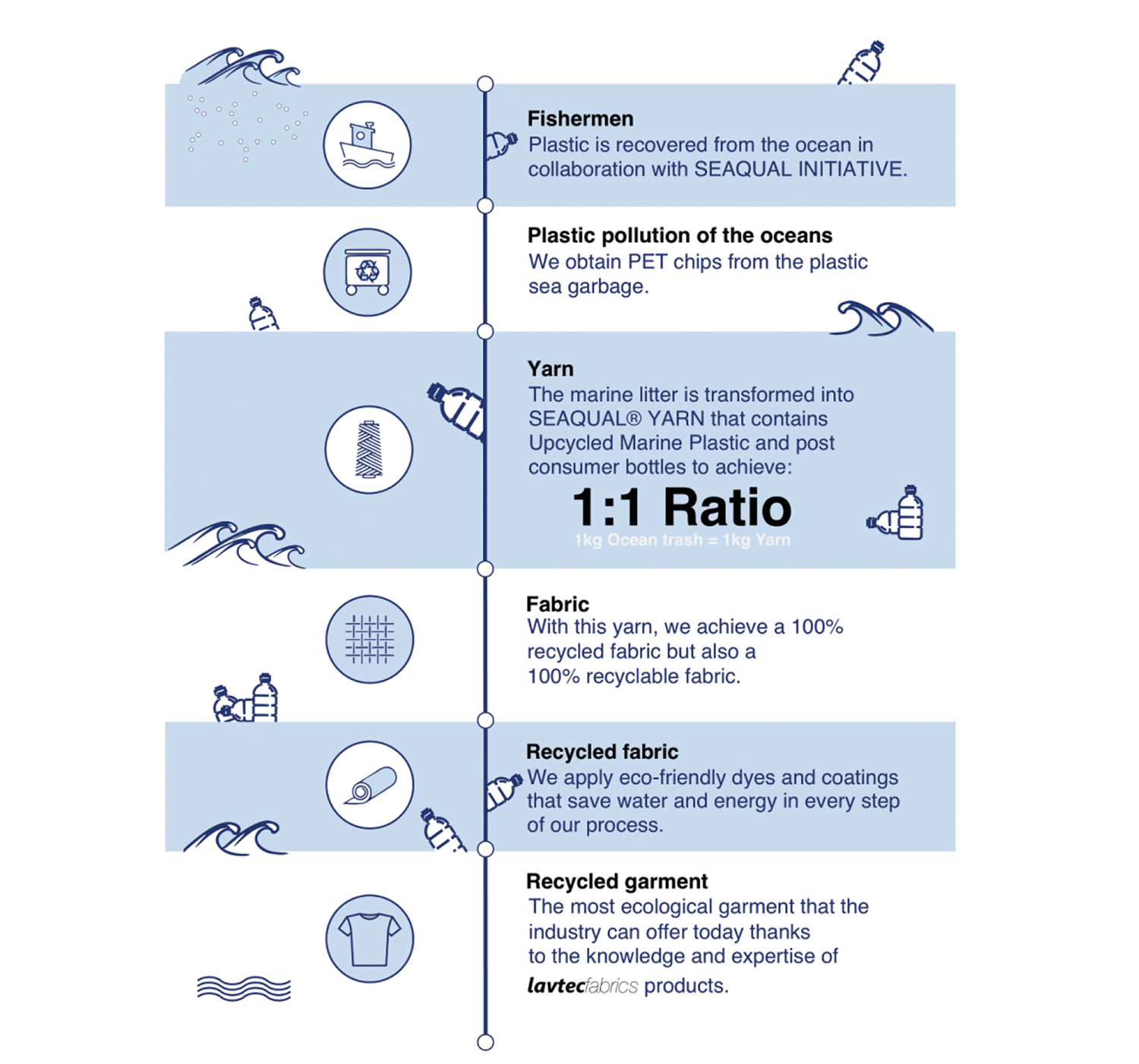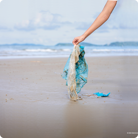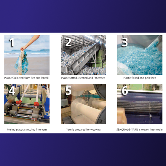 We turn plastic waste into fabric for medical uniforms, gowns, and sheets. Partnering with SEAQUAL, we collect ocean plastic, recycle it, and prevent landfill waste.