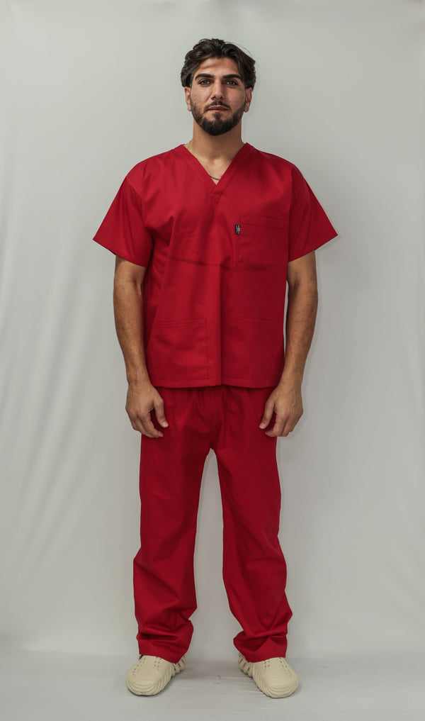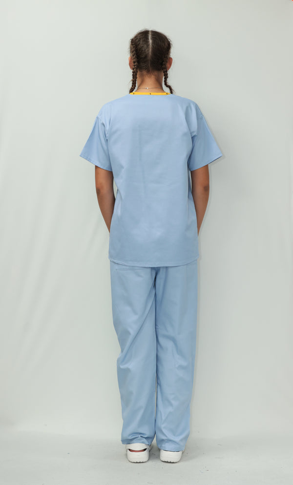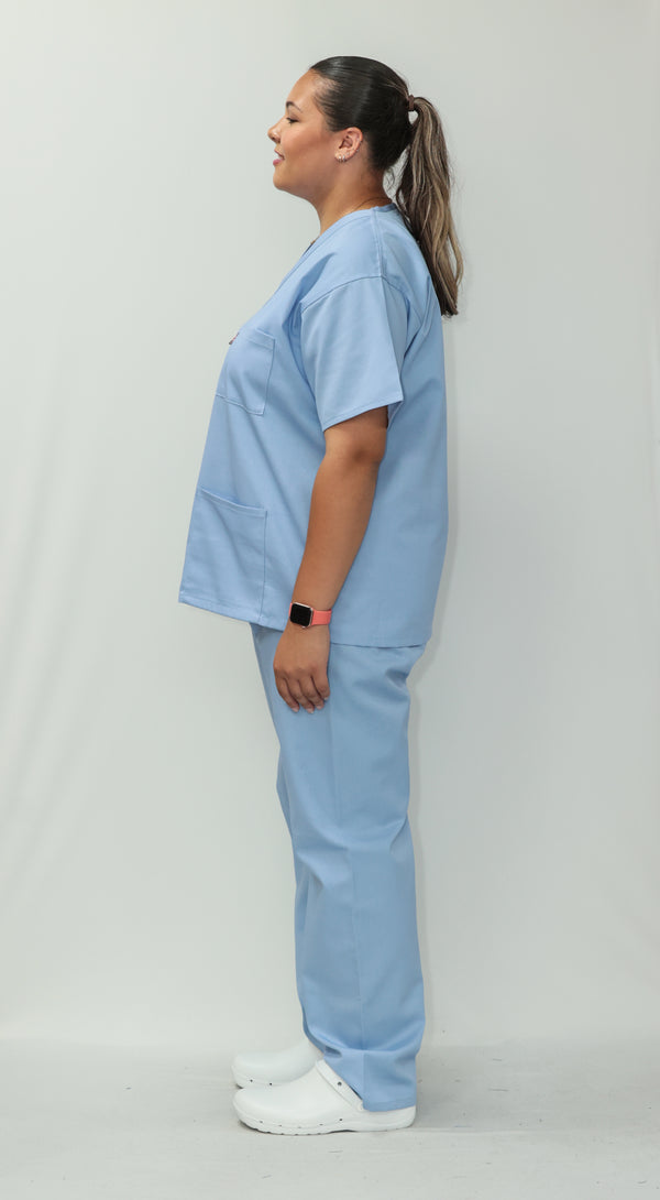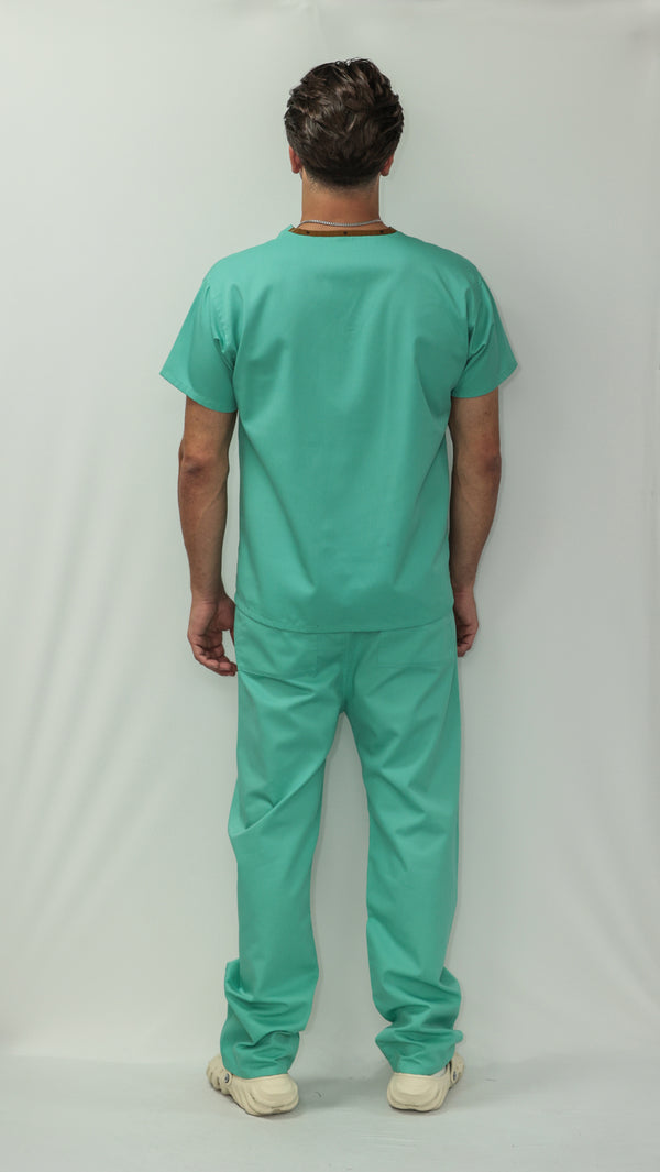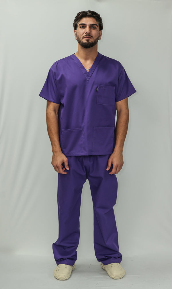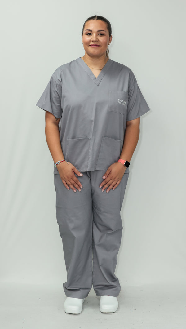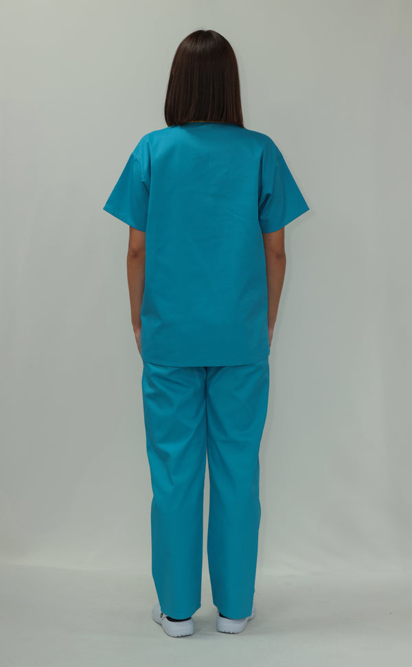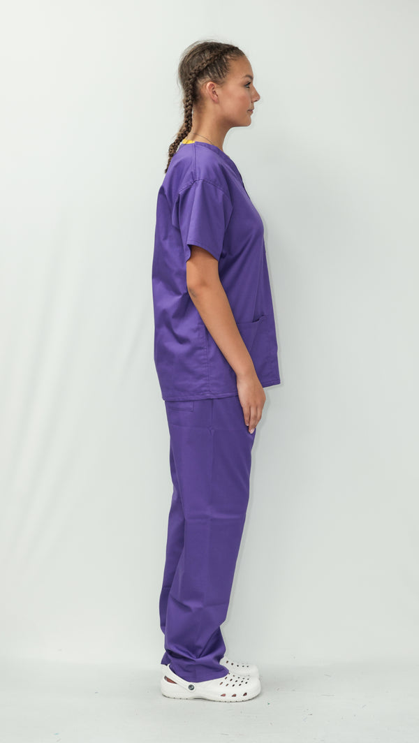 Our Unisex Scrub Set with customised embroidery logo is an ideal choice for healthcare professionals. Made from 65% Post Consumer PET Polyester and 35% Organic Cotton, these scrubs are breathable and durable. The V-neck top features one chest pocket and two hip pockets, offering practical storage for essentials. While the bottoms are a classic straight leg cut which gives a relaxed but professional fit. Available in a wide range of colours, including Black, Grey, Navy Blue, Light Blue, Royal Blue, Hospital Blue, Turquoise, Aqua, Jade Green, Maroon, Lilac, Purple, Bottle Green, Emerald Green and Red. With sizes ranging from X-Small to 2X- Large, these scrubs are sure to cater to every professional. Created to last, this scrub set is guaranteed for 2000 washes and can withstand washing temperatures up to 75°C, making it durable for regular industrial washing. As part of our sustainability mission, these scrubs have a carbon credit value and are included in our buy back scheme, allowing us to buy them back to be recycled again.